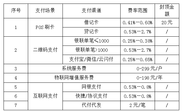 我司严格按照相关监管要求,在用户签约或使用APP时,将在商户协议或APP内根据具体情况明确告知实际需支付的费用/费率,确保符合以上费率标准和封顶值以降低商户经营成本、扩大消费为目标,提升经营管理水平和服务质量,避免同行业恶性竞争,促进我国银行卡产业持续健康发展。